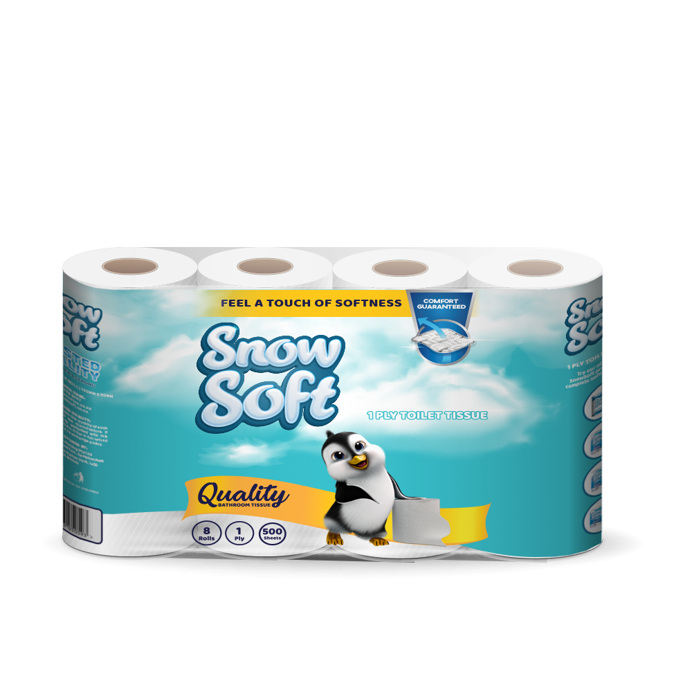 Snowsoft 1Ply 8 Rolls 500 sheets